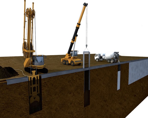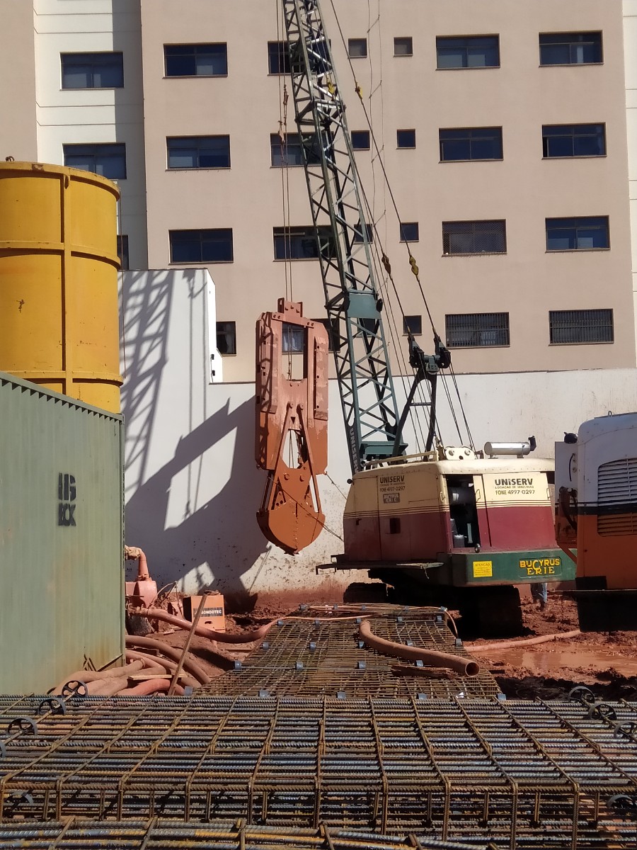 A SONDOTEC executa paredes diafragma com Clamshel que é a ferramenta empregada para escavação do solo, tendo a principal característica a execução de paredes retangulares com espessura de 30,40 e 50 cm e modulação de 2,50 m.