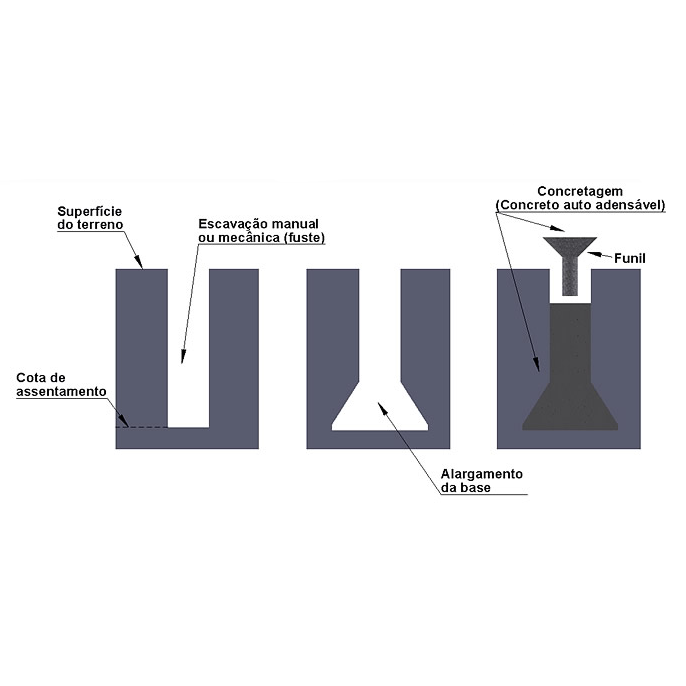 Os tubulões têm sempre o fuste cilíndrico, e a base pode ser alargada ou não. Os alargamentos podem terminar numa base circular ou ‘elíptica’. A SONDOTEC realiza projetos em Tubulão e executa somente a abertura do fuste.